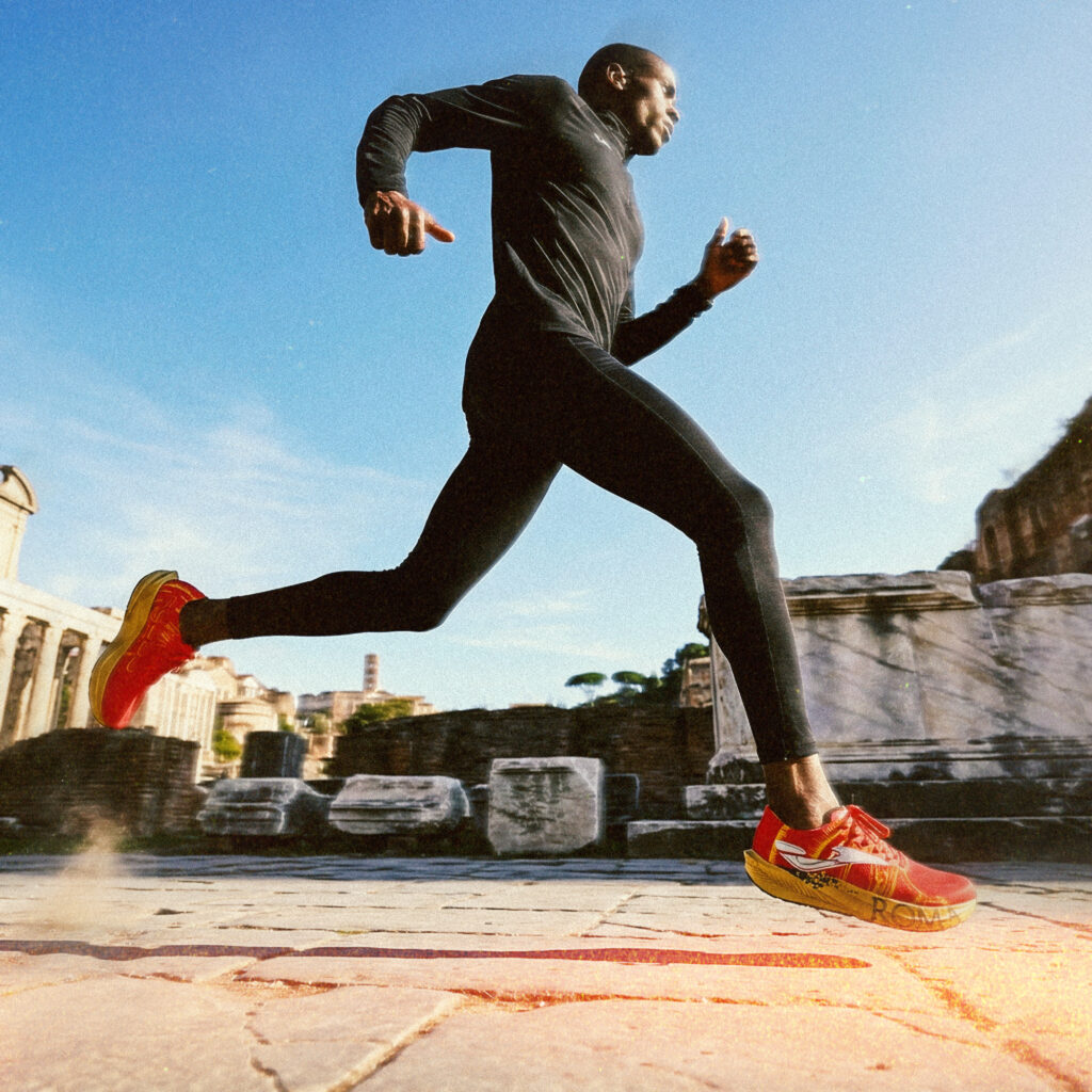 The gold details, featured on the upper and midsole, evoke gladiators’ armor and the grandeur of the Empire. This finish reinforces the values of honor, resilience, and ambition—qualities that also define the challenge of running a marathon.