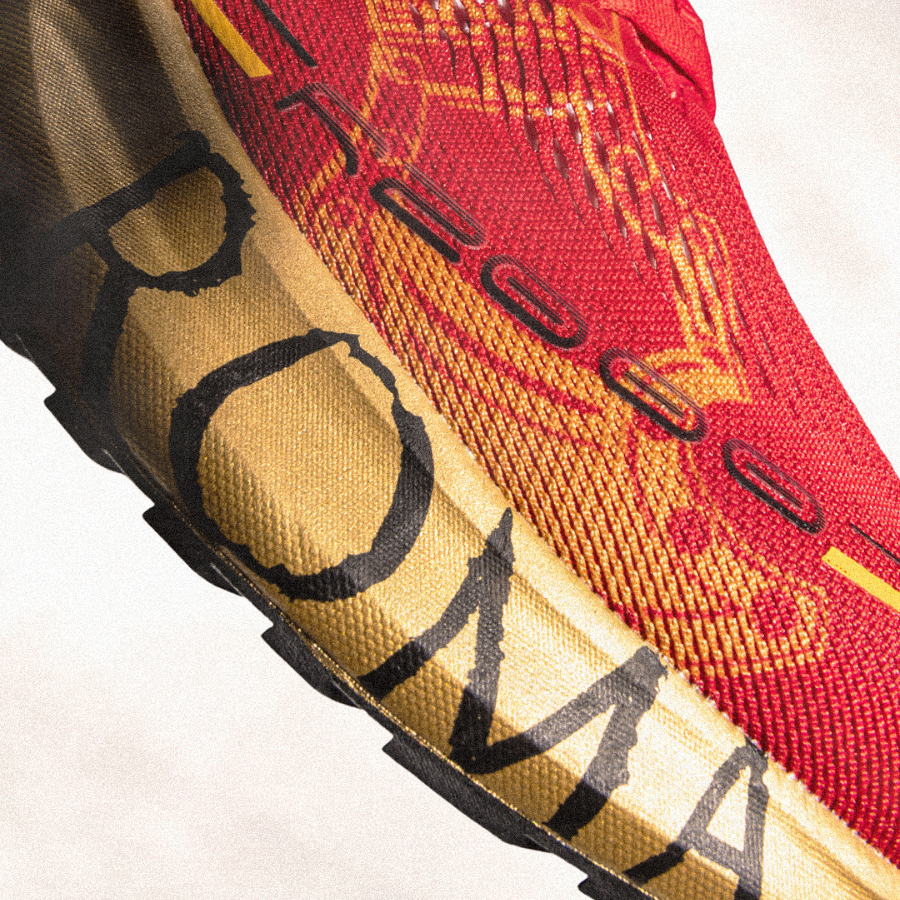 The design of this special edition pays tribute to the most representative symbols of the Roman Empire. The red upper references Roman military standards and commanders’ cloaks—colors historically associated with power, authority, and determination in battle.