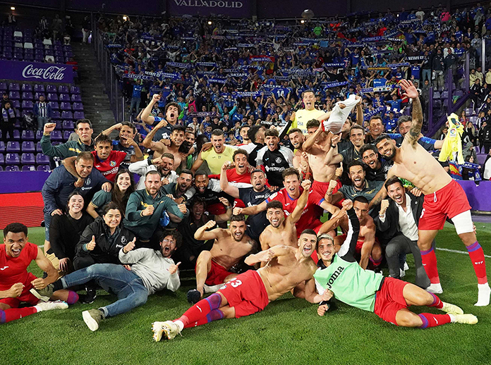 #ElGetafeDePrimeraNoSeVa fue su lema hasta hacerse realidad. Después de empatar ante el Real Valladolid (0-0), el equipo azulón consiguió salvarse del descenso y asegurarse la próxima temporada en Primera División. Después de dejar a su rival sin tiempo para mantener la categoría y de noticias de otros campos a su favor, el Getafe C.F. celebró por todo lo alto su continuidad.