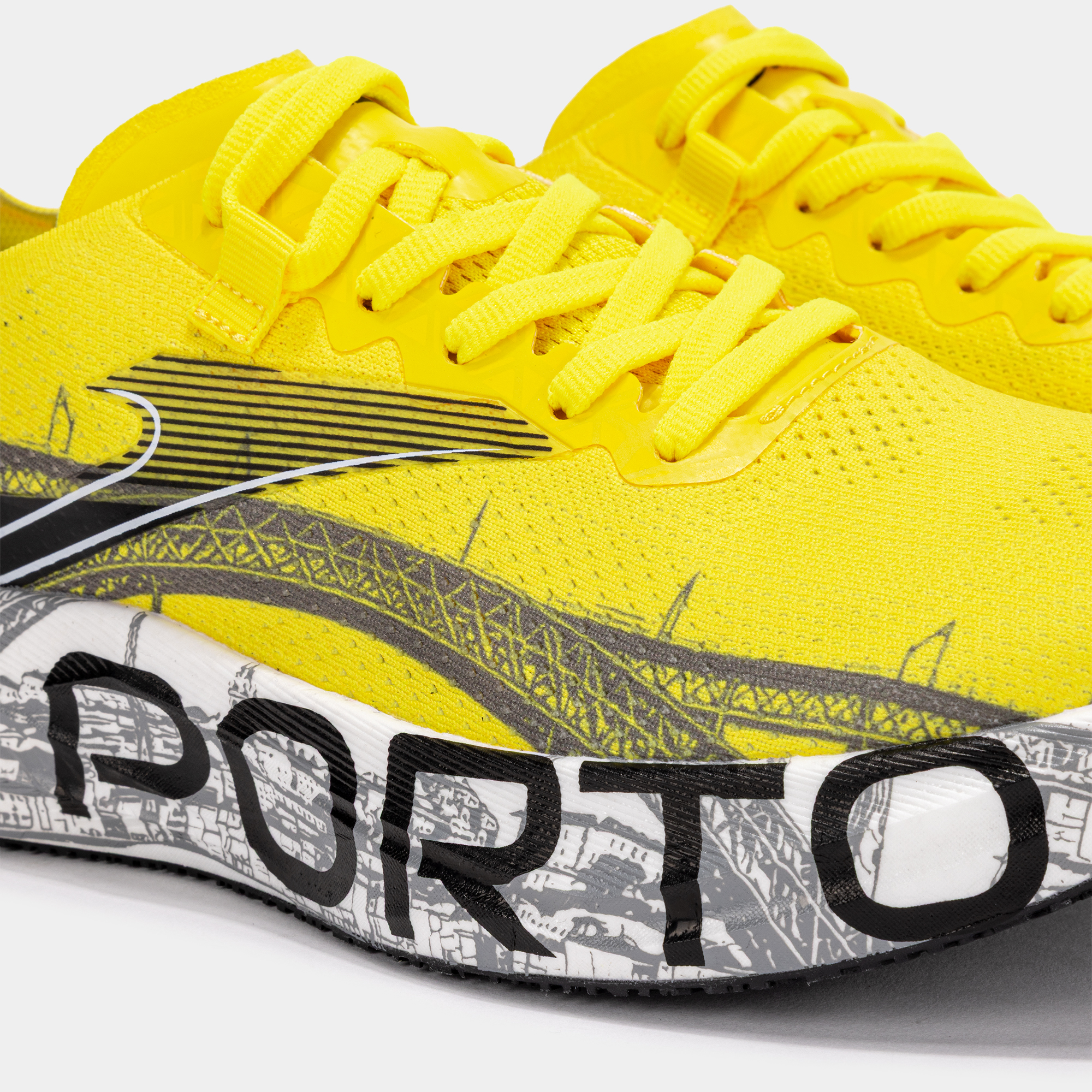 La città di Porto e il suo simbolo più riconoscibile, il Ponte Dom Luís I, ispirano le R-5000 Joma x Maratona do Porto, le scarpe ufficiali dell’edizione 2025. Questo modello esclusivo, dotato di piastra in carbonio, unisce l’identità storica della città alla tecnologia e alle prestazioni sportive tipiche di Joma.