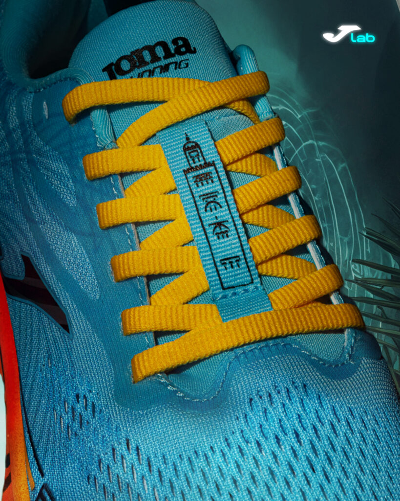 El diseño de esta edición especial se inspira en la identidad visual de Marrakech. El upper en tonos azules evoca la frescura de las primeras horas de la mañana, cuando la ciudad despierta y comienza la carrera. Sobre esta base se integran motivos inspirados en las palmeras, un elemento icónico del paisaje urbano y del propio recorrido del maratón.