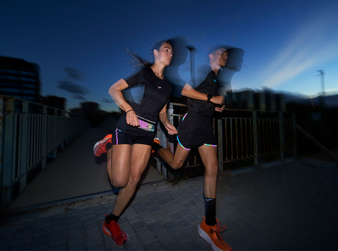 Equipada con detalles reflectantes ubicados estratégicamente, tejidos técnicos de última generación y un diseño pensado para alcanzar el máximo rendimiento, R-Night permite realizar las salidas nocturnas con total seguridad y sin renunciar a la comodidad. Y es que correr por la ciudad al anochecer es una experiencia única, pero también necesitas ropa que te permita preocuparte solamente por tu ritmo: