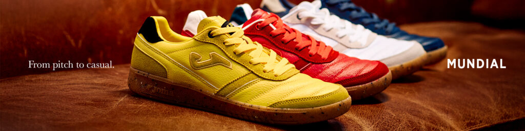 El concepto que guía esta nueva línea de Joma lo dice todo: «Mundial, from pitch to casual». Porque entendemos que tu día como deportista no termina en el campo. Sabemos que, después de darlo todo durante el juego, necesitas un calzado que te ofrezca el mismo rendimiento y estilo en el resto de tus actividades diarias.