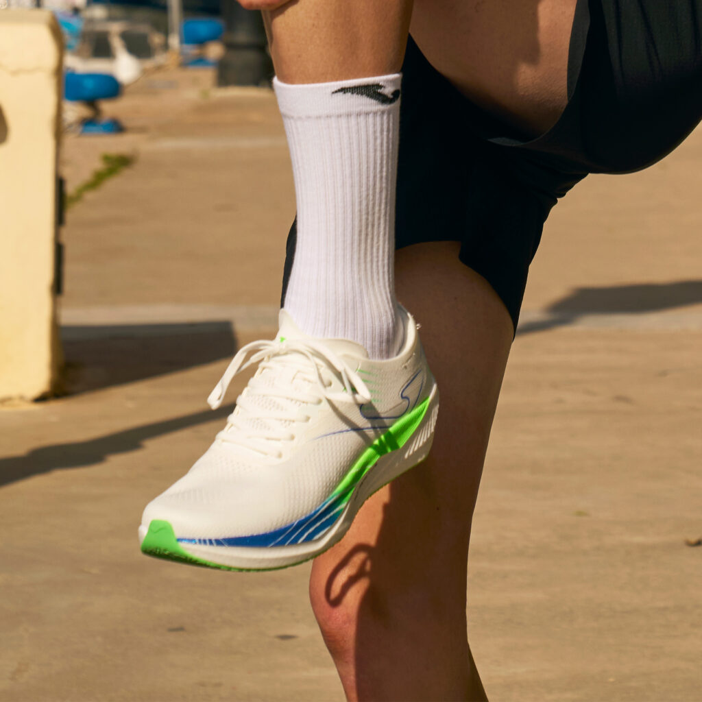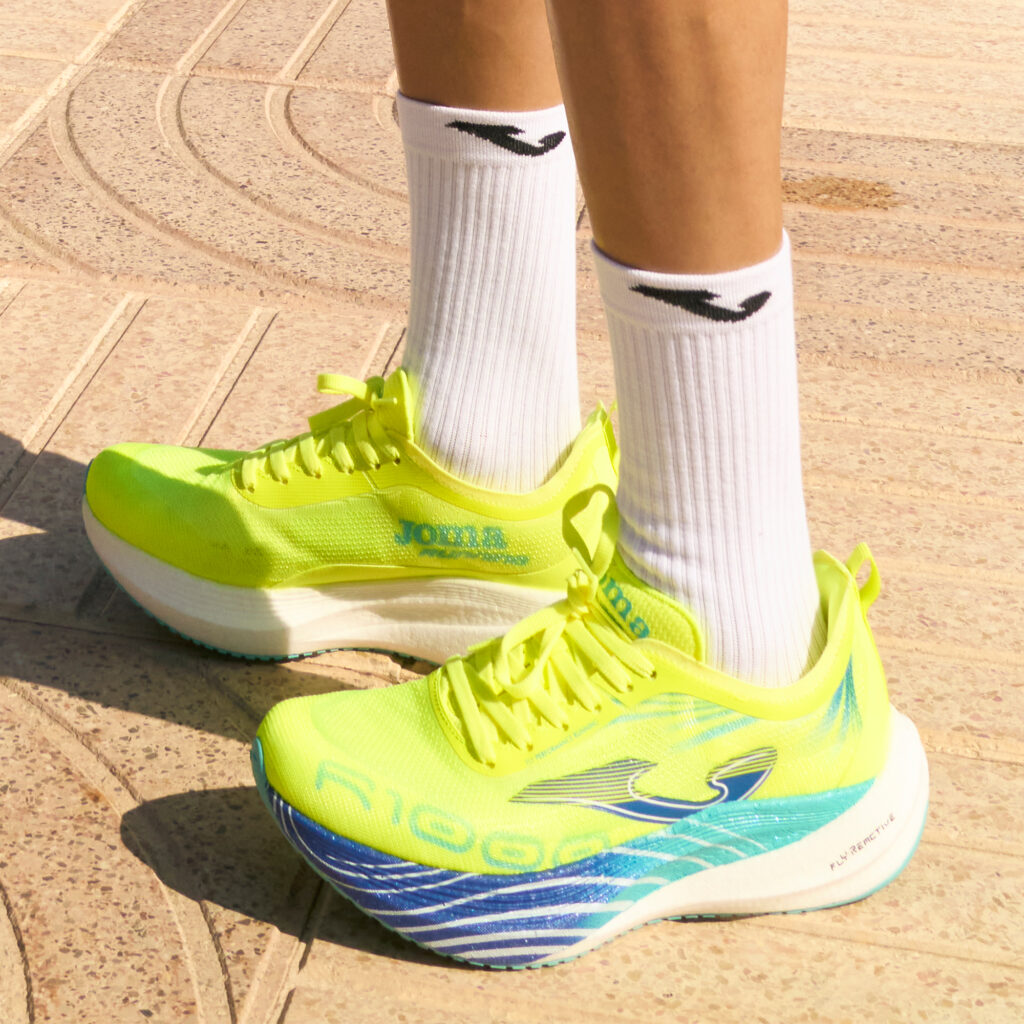 Por eso, la línea R de Joma da un paso más incorporando nuevos colores vibrantes y combinaciones llamativas que permiten al runner destacar desde el primer kilómetro. Tonos como el amarillo flúor o el blanco con detalles en azul y verde responden a una tendencia global.