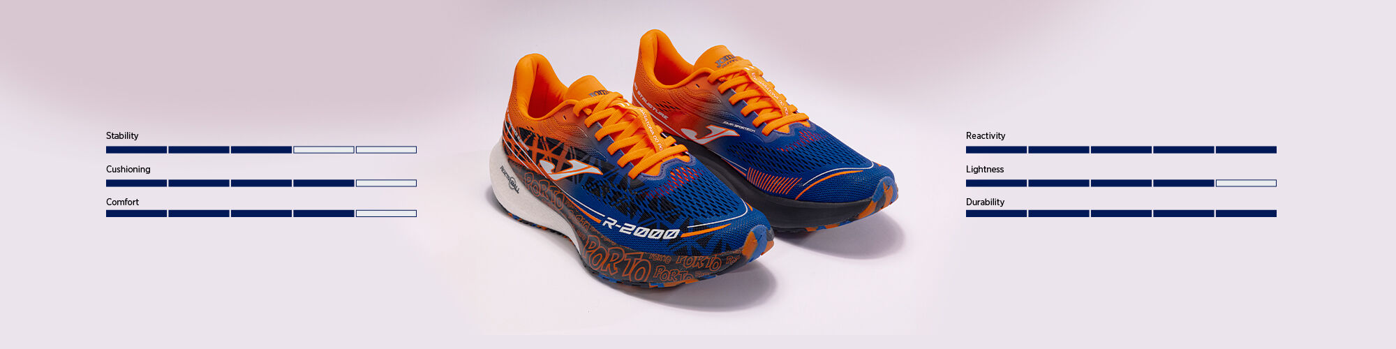 The new official shoes of the Maratona do Porto are now available in the R.2000 model, the most versatile and comfortable created by Joma to date. This evolution will make it possible for every runner to find their ideal sports shoe in this 16th edition. Rich in comfort, cushioning, reactivity, and lightness, adapting to any profile and situation.